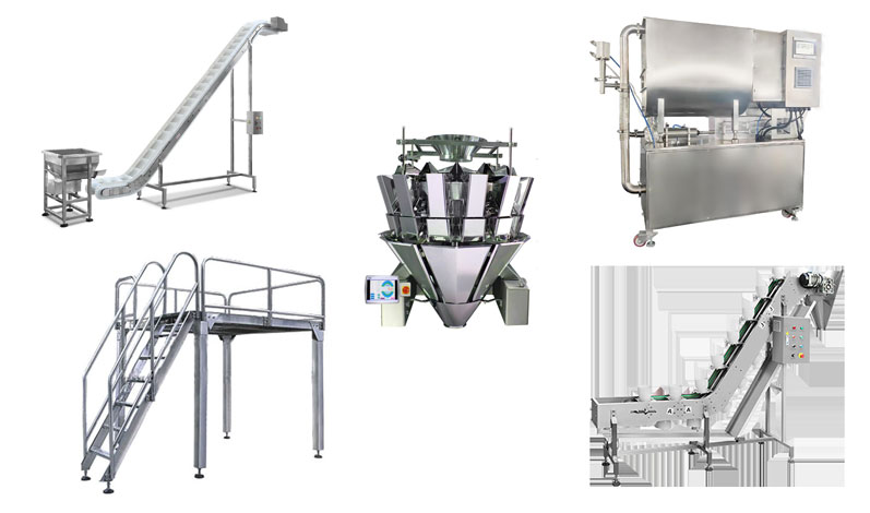 2.適用范圍:土豆牛肉、酸辣雞雜、紅燒牛腩、辣椒炒肉等帶湯汁的料理包包裝。這套設(shè)備是由給袋式包裝機(jī)+工作平臺(tái)+碗式提升機(jī)+多頭組合秤+提升機(jī)組合而成。