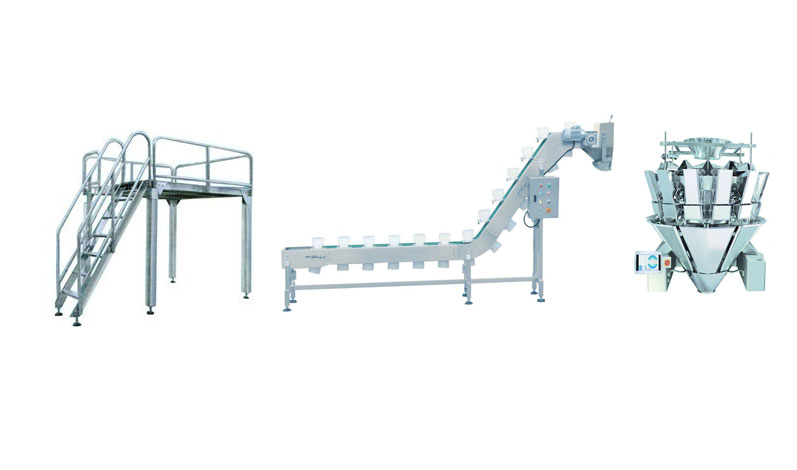 2.使用范圍:海帶結(jié)、藕片、豆制品、鹵制品等食品的包裝。這套設(shè)備是由真空包裝機(jī)+多頭組合秤+工作平臺(tái)+碗式提升機(jī)組合而成。
